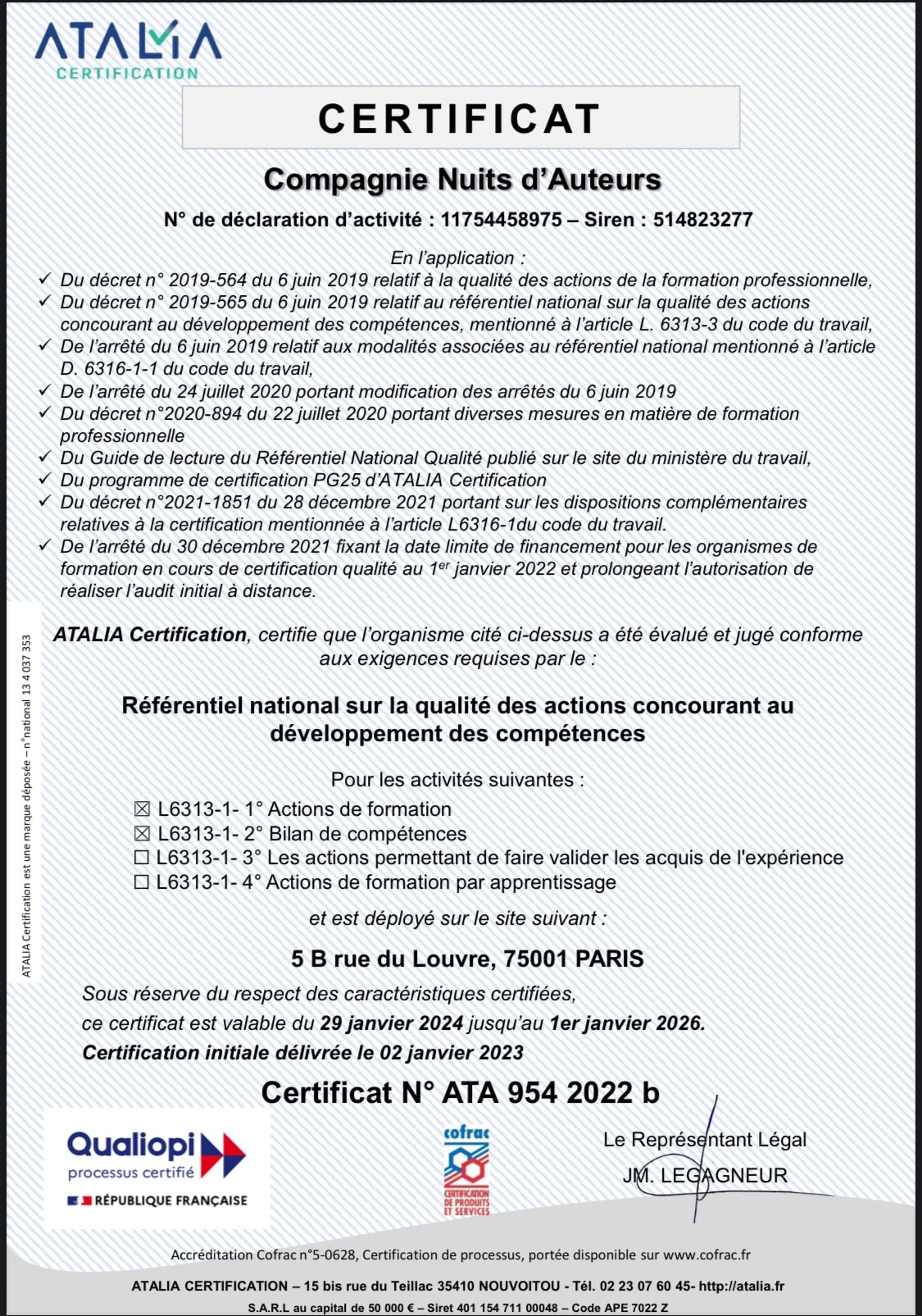 La certification a été délivrée au titre de la ou des catégories d’action suivante : Bilan de compétences et formation